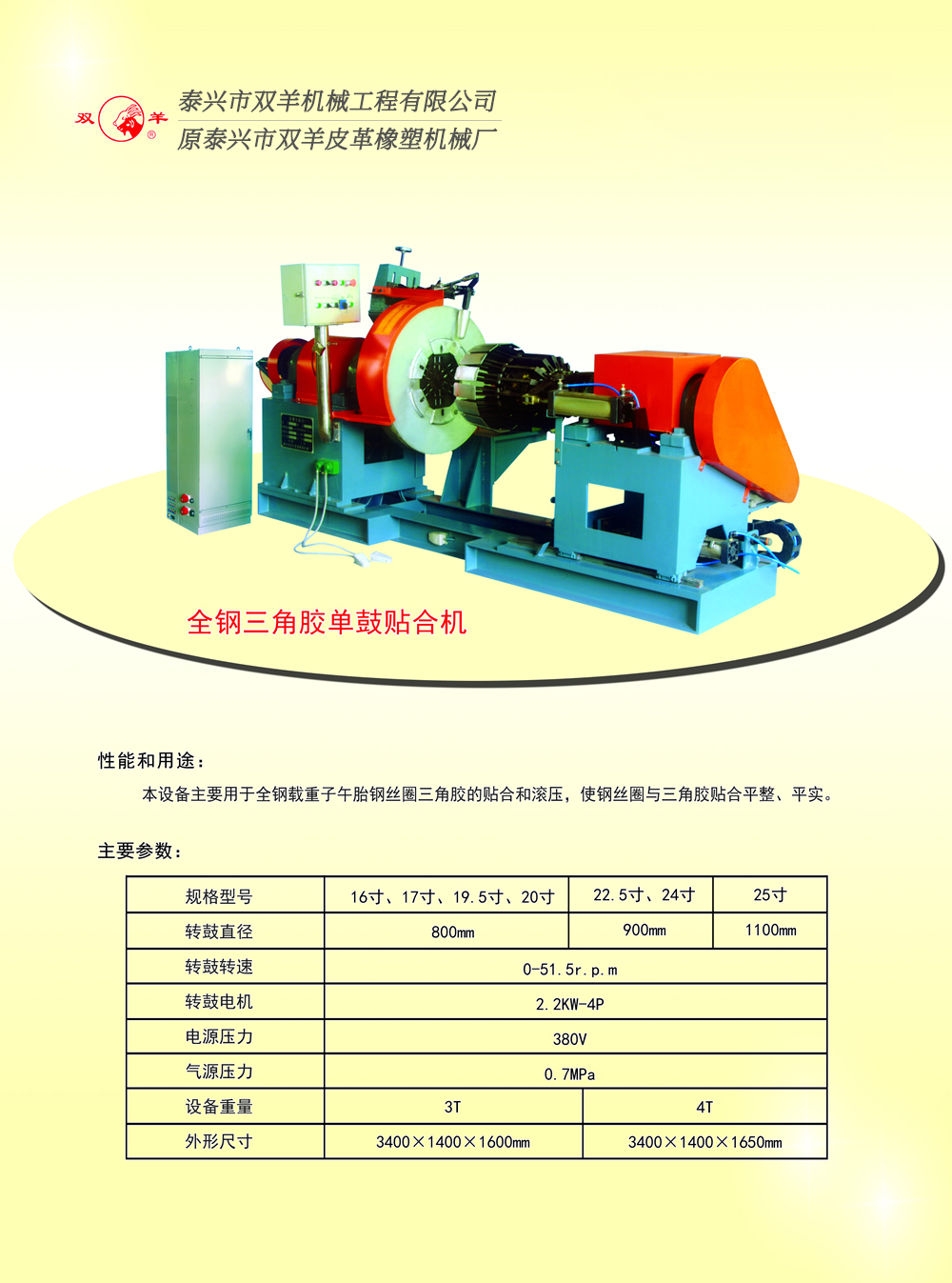 全鋼三角膠單鼓貼合機、胎圈傘貼機 發(fā)布者: 發(fā)布時間:2015-10-26 點擊量: 3005